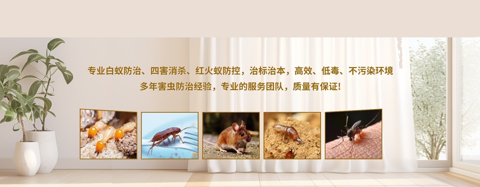 公司主要承接:顺德白蚁防治,大良新建房屋预防白蚁工程,陈村室内装修预防白蚁工程,北滘杀灭白蚁,容桂房屋杀白蚁,勒流家庭杀灭白蚁服务,顺德厂区仓库灭治白蚁工程,龙江住宅小区花园别墅灭治白蚁工程,伦教水库堤坝白蚁防治,勒流园林、沙头古树白蚁防治。均安四害消杀,顺德除四害(蚊、蝇、蟑螂、老鼠)消杀工程,陈村厂区四害消杀,大良厂房除四害服务,龙江街道四害消杀工程,北滘厂区杀虫灭老鼠,各种环境大型灭老鼠工程,室外草坪绿化大面积杀灭红火蚁服务。